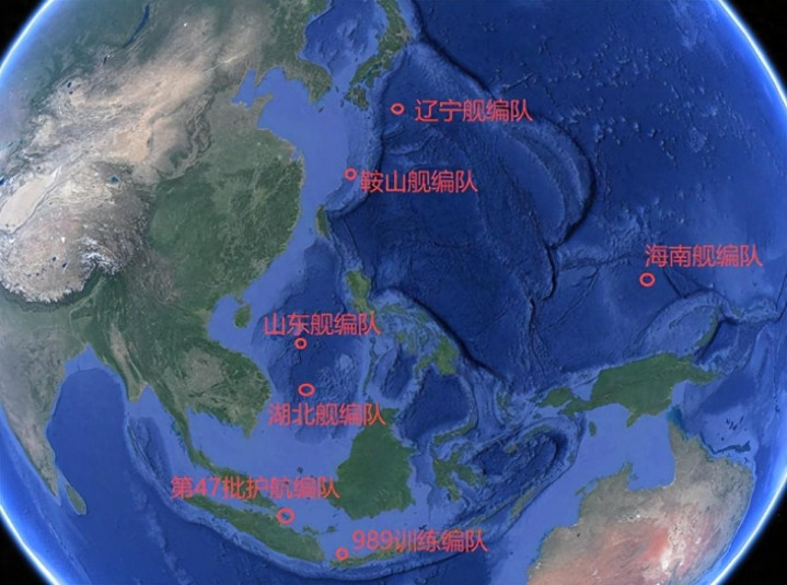 辽宁舰编队早就在东面的西太平洋搞演训,在日本东边的海里布置好阵形;山东舰带着一串舰艇在南海练攻防,海南舰一路南下,目前在菲律宾海、巴布亚新几内亚以北海域活动,澳方已公开表示正在对这支编队进行跟踪监视,这一位置距离澳大利亚北部并不算远。。